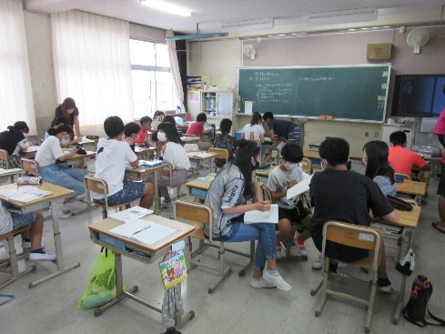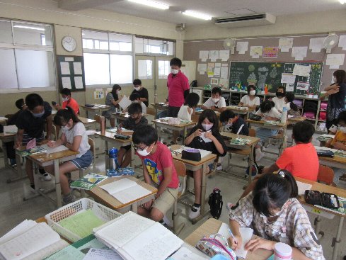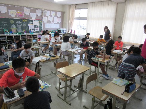 2時間目は算数の授業でした。比を使って、ケーキを作るときの小麦と砂糖の量を求める方法を考えました。