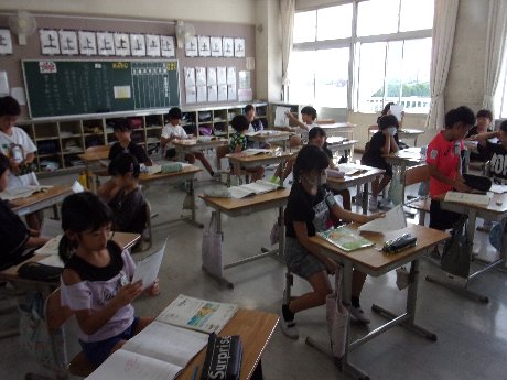 2時間目は算数の授業でした。九九の読み上げ計算のタイムトライアルをしました。