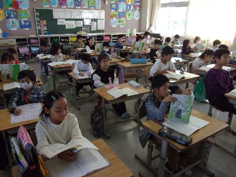 1時間目は国語の授業でした。「お手紙」を一斉に音読して、がまくんとかえるくんの気持ちについて考えました。
