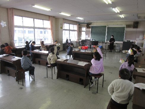 2時間目は音楽の授業でした。「さがしてみよう ならしてみよう」で、気に入った音をみつけて、歌と一緒にならしてみました。