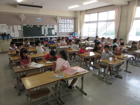 出校日でした。宿題の答え合わせをしたり、今日までに提出する作品を集めたりしました。