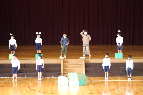 今日は、明日の本番と同じ時間帯で学習発表会の練習を進行しました。クライマックスシーンは・・・・。当日のお楽しみに。