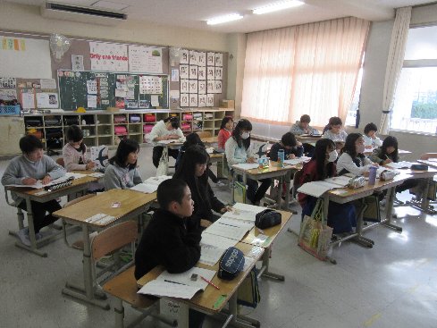 1時間目は国語の授業でした。「文と文をつなぐことば」について考えました。