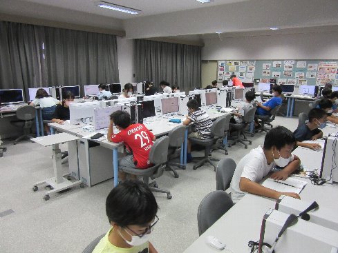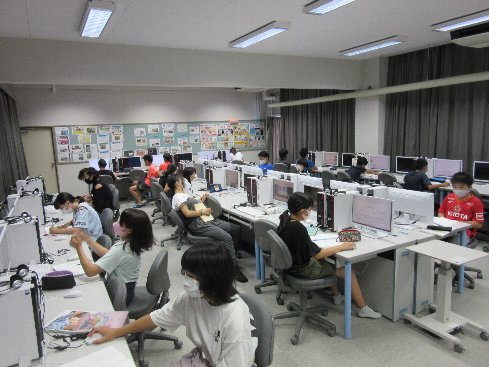 3時間目は理科の授業でした。コンピューター室でインターネットを使って地層について調べ学習をしました。