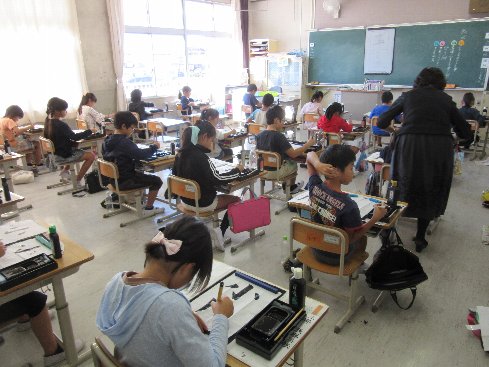 1時間目は書写の授業でした。書写コンクールの課題「小川」を丁寧に練習しました。