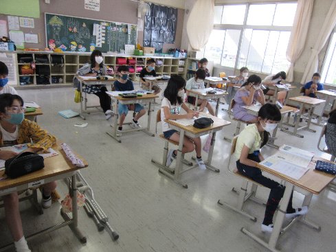 1時間目は音楽の授業でした。「こいのぼり」を歌詞やリズムの面から学習しました。大きな声で歌ったり、リコーダーを吹いたりできない分、リズムで表現しました。