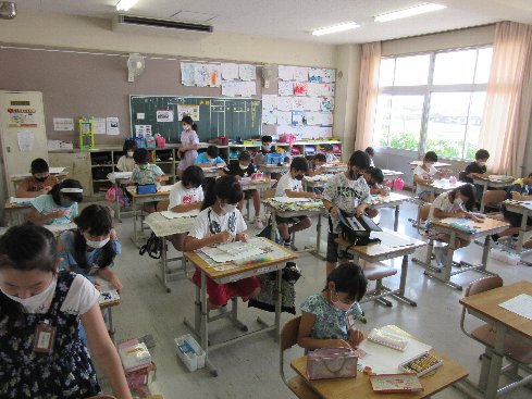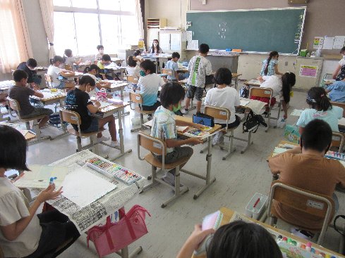 3・4時間目は図画工作の授業でした。夏休みの思い出を絵に描きました。
