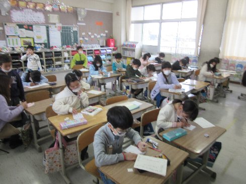 5月29日(火)3時間目は算数の授業でした。問題の答え合わせをしました。早く終わった子は、読書をして待っていました。