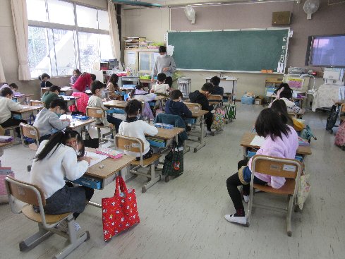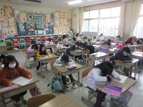 1時間目は国語の授業でした。これまでの生活の振り返りをした後、漢字練習をしました。