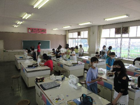 3・4時間目は家庭科の授業でした。ミシンを使って巾着袋作りをしました。