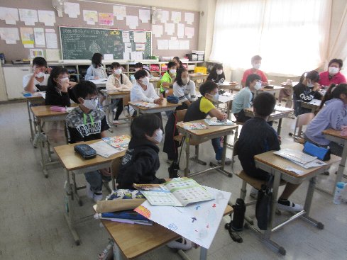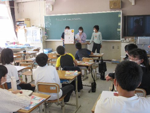2時間目は英語の授業でした。食物連鎖について調べたことを英語で発表しました。