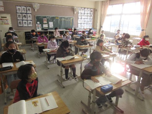 1時間目は国語の授業でした。プラタナスの木を読み進めて、場面ごとに題名を付けました。