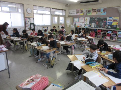 3時間目は国語の授業でした。「おもちゃの作り方」でしかけカードの作り方を音読した後、おもちゃの作り方を考えました。
