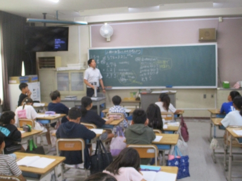 小数のたし算のひっ算の仕方を、これまでの学習で身に付けた考え方を生かしながら、考えていました。練習問題を通して、計算の仕方やその仕組みについて理解を深めていました。