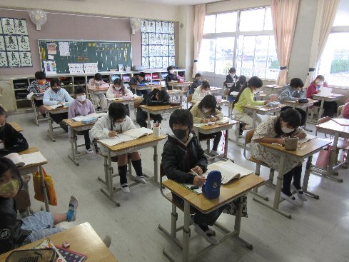 1時間目は国語の授業でした。言葉を選んで詩を書きました。