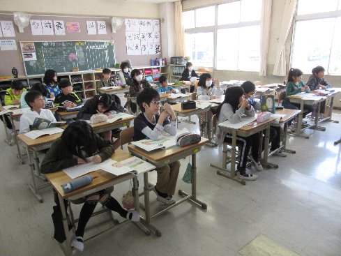 3時間目は国語の授業でした。「あめ玉」という作品について主題を考えました。
