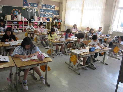 5月1日(火)4時間目は国語の授業でした。漢字ドリルに取り組みました。1文字ずつ、空書きをして書き順を確認してから練習しました。