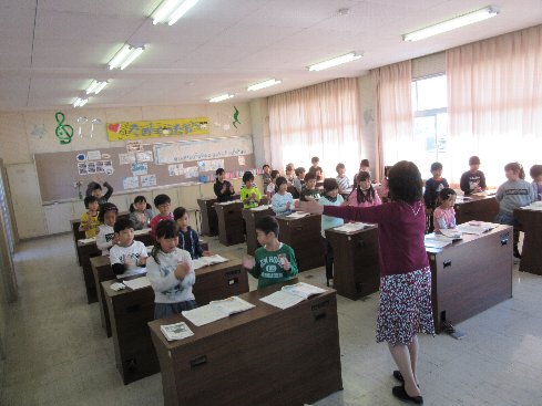 4月13日(金)2時間目は音楽の授業でした。「メッセージ」という歌を、身振り・手振りをつけて楽しく歌いました。さらに、色んな国のことばであいさつを入れ込んで歌いました。