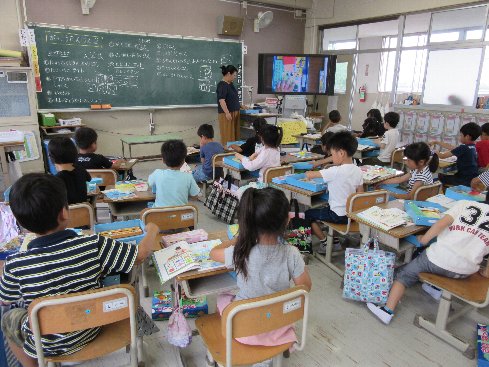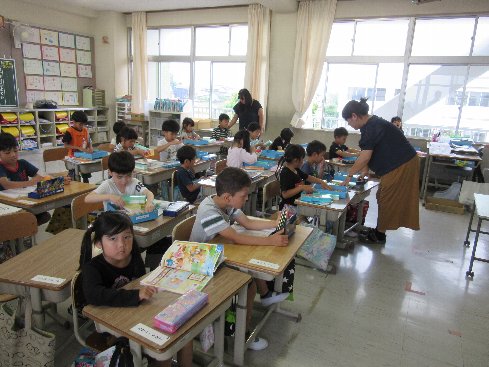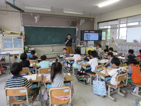 2時間目は算数の授業でした。授業の前に、お道具箱の整頓をしてから、算数ボックスのおはじきを使って学習を進めました。