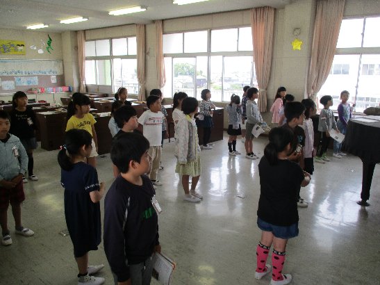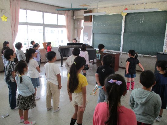 1時間目は音楽の授業でした。「春の小川」を音階で歌いました。