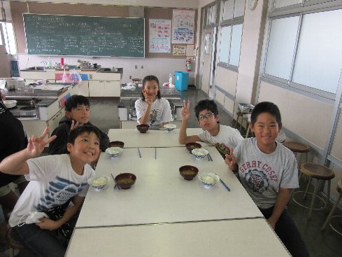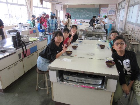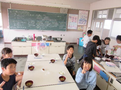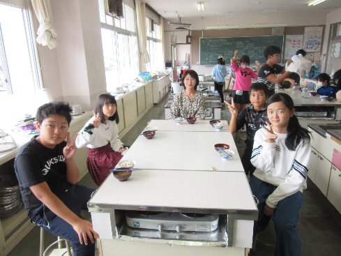 1・2時間目は家庭科の授業でした。「ご飯と味噌汁を作ろう」ということで、調理実習に取り組みました。煮干しからだしを取って、本格的な味噌汁に「おいしい」という声があちこちから聞かれました。お家の方にも作ってあげてほしいなぁ。