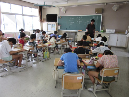 7月19日(木)1時間目は夏休みの宿題を配布しました。そのあとポスター等の課題の割り当てをして、詳しい説明を聞きました。