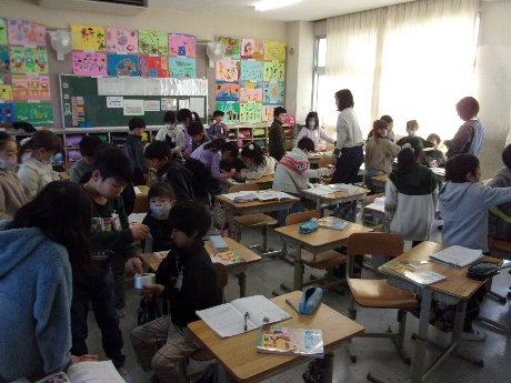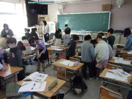 1時間目は算数の授業でした。1mの長さを実際に作って体感しました。