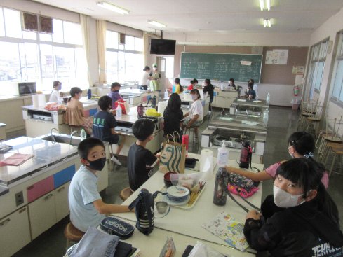 3・4時間目は家庭科の授業でした。お弁当の日に向けて、調理実習をしました。今回は、スクランブルエッグと野菜のいろどりいためを作りました。できあがったおかずは、給食と一緒にいただきました。