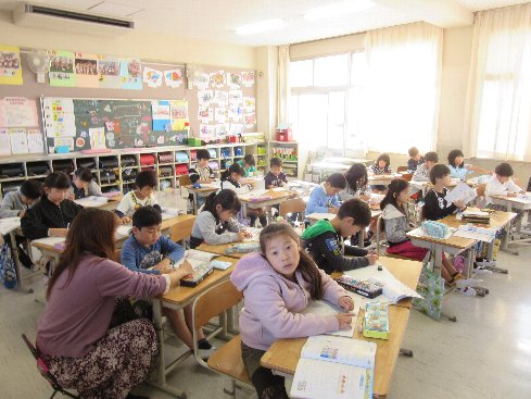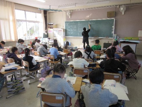 1時間目は算数の授業でした。「復習をしよう」で、章末の問題に取り組みました。