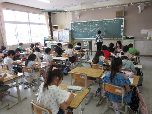 3時間目は算数の授業でした。問題を読んで、どんな式になるのか考えました。