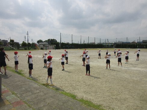 1時間目は体育の授業でした。秋竹ストレッチを行ってから、短距離走を行いました。