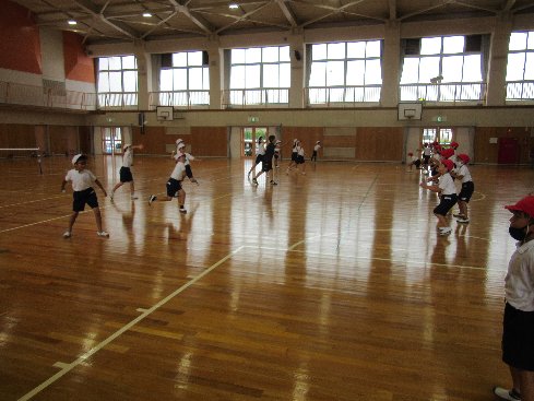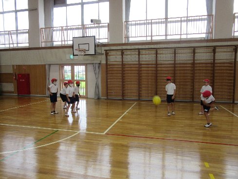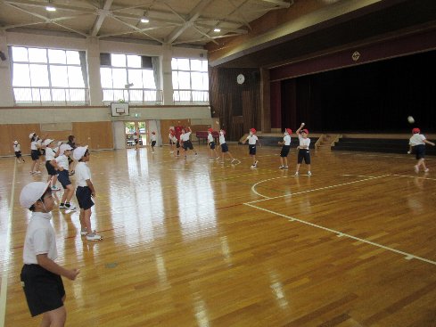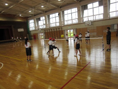 1時間目は体育の授業でした。ボール投げの後、ソフトバレーボールでミニゲームをしました。