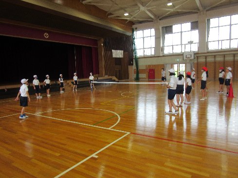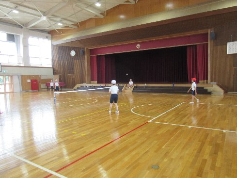 1時間目は体育の授業でした。バウンドテニスに取り組みました。