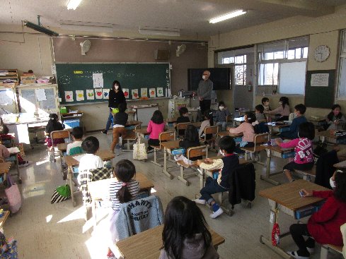 1時間目は外国語活動の時間でした。くだものの名前を英語で発音練習しました。