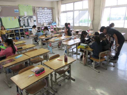 1時間目は学活でした。ハロウィンパーティーの準備をしました。