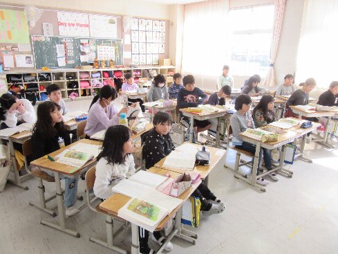 4時間目は国語の授業でした。プラタナスの木の第3場面を読み進めました。