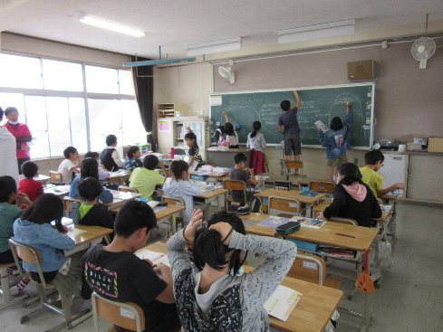 3時間目は道徳の授業でした。「あいさつ運動」という題材を元に考えました。