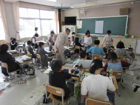 5月1日(火)4時間目は図工の授業でした。図工室で活動しました。様々な技法を使って、模様を描きました。