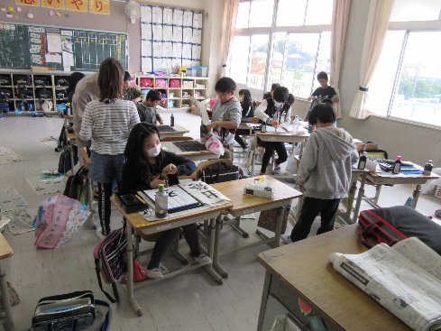 4時間目は書写の授業でした。作品展の作品の清書は、一通り終わったのですが、もうひとがんばり・・・・