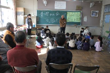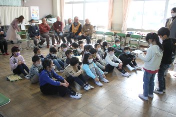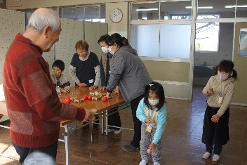 2・3時間目に、「昔遊びの会」を行いました。地域のお年寄りに来ていただいて、おはじきやけん玉、コマ回しや凧揚げなど昔ながらの遊びを教えていただきました。