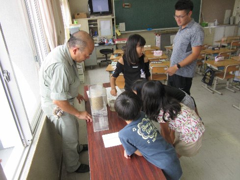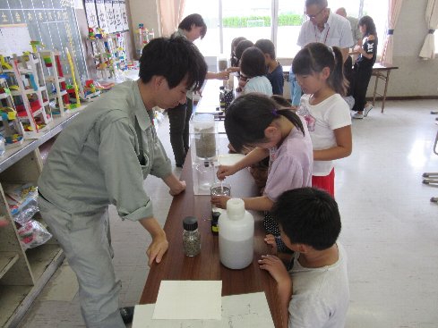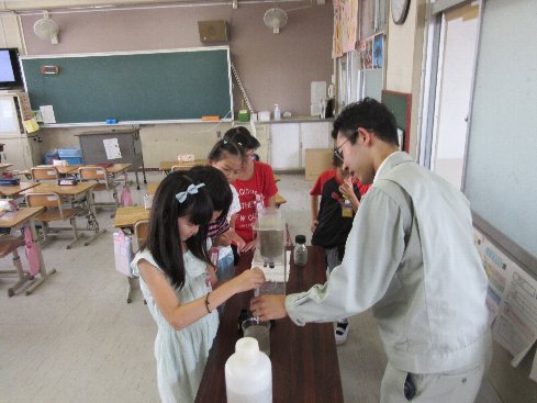 3時間目は社会科の授業でした。尾張水道事務所から4名の方に来ていただいて上水道の出前授業をしていただきました。どうやって、水をきれいにするか実験しました。