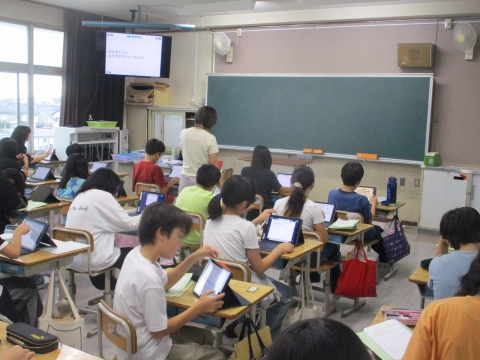 先週の金曜日に出かけた校外学習での学びを、タブレット端末を使ってまとめていました。