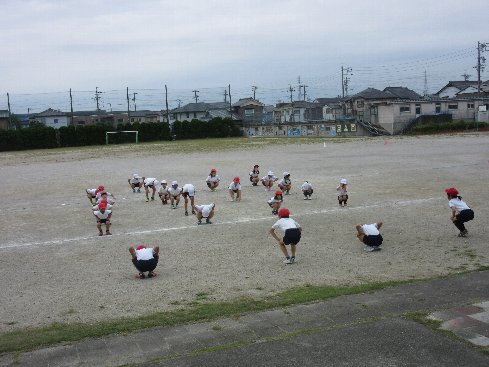 2時間目は体育の授業でした。準備運動を終えてからバトンの受け渡し練習をしました。