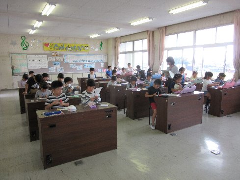 5月30日(水)3時間目は算数の授業でした。章末問題に取り組みました。早くできた子が「小さい先生」になって、理解がまだの子のお手伝いをしていました。