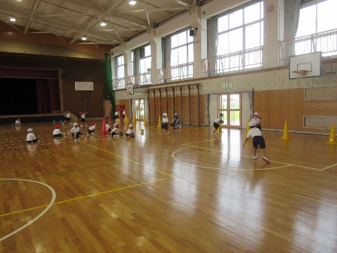 3時間目は体育の授業でした。赤白に分かれ、