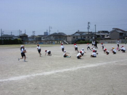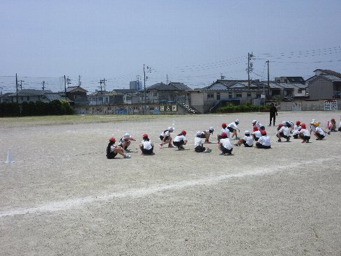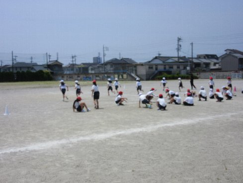 3時間目は体育の授業でした。ウォーミングアップを終えた後、いといろなしかたでスタートをしました。後ろ向きに体操座りをしている状態からスタートするなどなど。「え~っ、むつかしい」と良いながら、楽しそうに体を動かしていました。