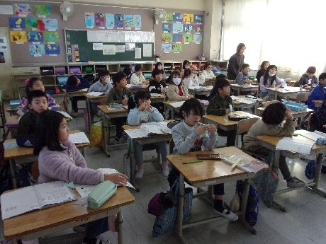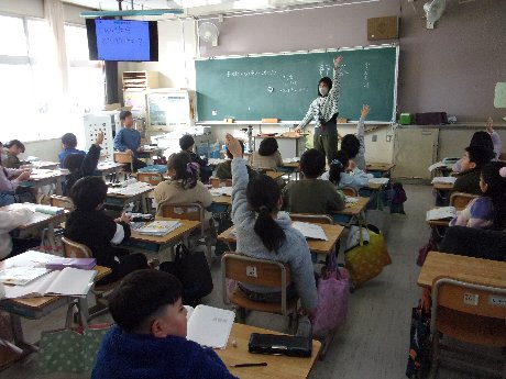 1時間目は算数の授業でした。紙を折ってできた図形について考えました。