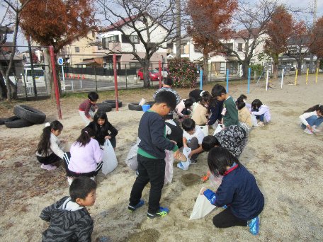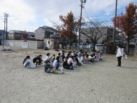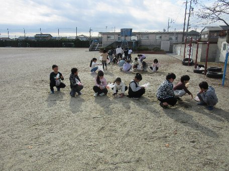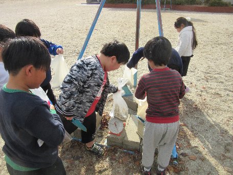 2時間目は算数の授業でした。砂場で袋に1kgだろうという量の砂を入れて、重さを量りました。誤差100gの子もいれば、ほとんど2kgの子もいて、感覚の差がすごいと感じました。最終的に、全員1kgを量って、体感しました。