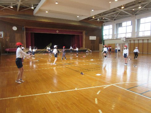 3時間目は体育の授業でした。短縄練習をしてから、ポートボールに取り組みました。
