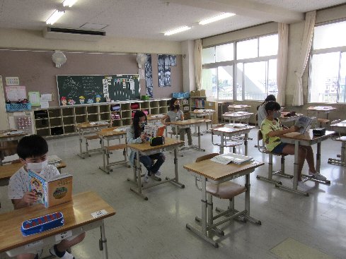 黒板の指示に従って、手洗いを済ませ、荷物を片付けて、静かに読書を勧めることができました。さすが5年生。たった6人で寂しかったですが、きちんと生活をすることができました。